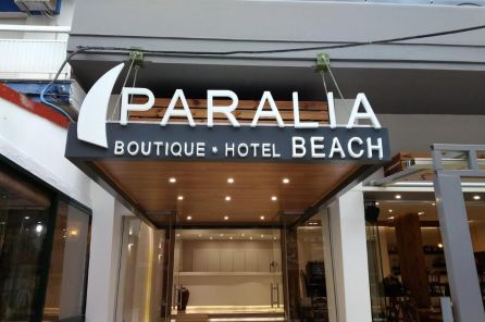 Paralia Beach Boutique Hotel се намира в Паралия Катерини, на 2,8 километра от плажа Коринос. Църквата Агия Фотини е на 500 метра. Най-близкото летище е Солун, разположено на 43 км от бутиков хотел Paralia Beach. Хотелът предлага платен летищен трансфер.