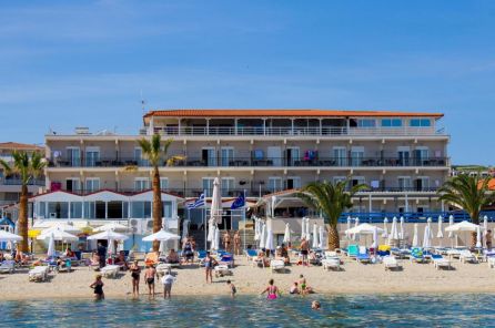 Хотелът е разположен на 100 км. от Солун, в курорта Ханиоти, в близост до центъра на курорта, на 60 м. от хубав пясъчен плаж. Реновиран през 2007 г.