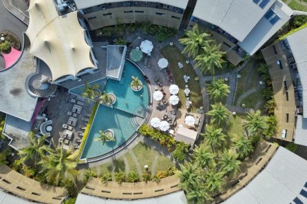 Разположен в сърцето на морското селце Тру-о-Биш и се намира само на 100 метра от красивия плаж на северозапдното краибрежие на остров Мавриций.  Мястото е оазис на спокойствието, обгърнат от слънчева светлина, а още едно от неговите предимства е близостта му до центъра на Гранд Бей.