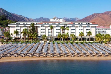 Faros Premium Beach се намира в Мармарис, на няколко крачки от плажа Ичмелер. Предлага помещения за настаняване с ресторант, безплатен частен паркинг, сезонен открит плувен басейн и фитнес център. Сред разнообразните удобства на място са бар, градина и частен плаж. Хотелът предлага денонощна рецепция, рум-сървиз и обмяна на валута. Сутрин се сервира континентална закуска или закуска на шведска маса. Гостите на Faros Premium Beach могат да се възползват от сауната. Плажът Icon Beach е на по-малко от 1 км от хотела, а Turunç Plajı е на 2,8 км. Най-близкото летище е Даламан, на 51 км от Faros Premium Beach.