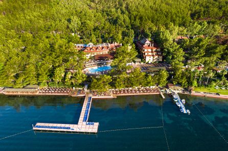 Намира се на 102 км от летище Даламан, на 8 км от центъра на Мармарис, на 2 км от района на Ичмелер, на брега на морето. Построен 1988 г., на обща площ от 38 000 M². Частично реновиран 2025 г.