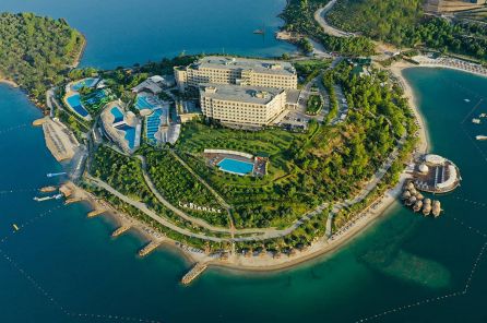 Намира се на 15 км. от летище Милас, на 26 км. от центъра на Бодрум, на 3 км от центъра на Гюверджинлик, на брега на морето. Построен през 2014г., на обща площ от 82 000 m². Реновиран през 2023/2024г. - ресторантите, общите части и подобрена Ultra All Inclusive концепция.
