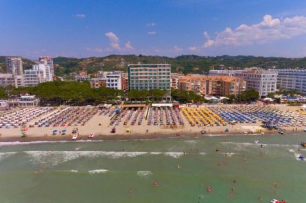 Собствен, пясъчен, на 100 м от сградата на хотела. Чадъри и шезлонги на плажа и при басейна – безплатно, плажни кърпи - срещу заплащане.