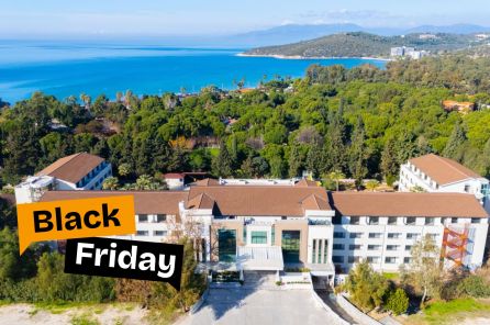 Намира се на 65 km от летище Измир, на 124 км от летище Милас, на 5 км. от центъра на Кушадасъ, на 250 м. от брега на морето. Построен на обща площ от 12 500 кв.м.