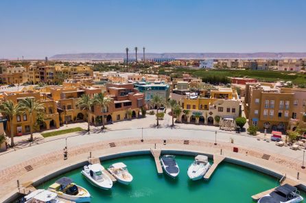 Намира се на 40 км от летище Хургада, на 21 км от центъра на Хургада, в района на пристанище Абу Тиг в Ел Гуна, на брега на морето.