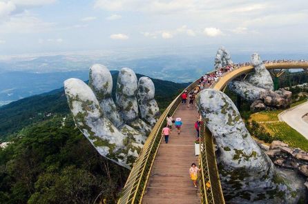 „Ръцете на Бога“ е впечатляващ 150-метров пешеходен мост, който се намира в курорта Ба На Хилс, на около 1,5 часа път от Хой Ан. Този уникален мост е една от най-запомнящите се и популярни забележителности в света, заради своята невероятна архитектура и уникален дизайн.
