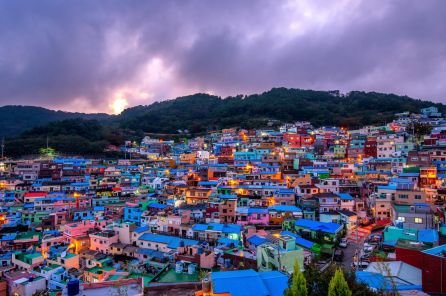 Закуска. Трансфер до гарата и отпътуване за Пусан с високоскоростен влак / пътуваме само с ръчен багаж, основният ни багаж ще ни чака в хотела ни в Пусан/. Посещение на културното село Камчон. Градът е известен със своите многопластови улици, криволичещи лабиринтовидни алеи и ярко боядисани къщи, които са реставрирани и подобрени през последните години, за да привлекат туристи. Построено на стръмен планински склон, селото е наричано „Корейският Санторини“ и „Мачу Пикчу на Пусан“. Една от забележителностите на Пусан е пазарът Агалчи, разположен на крайбрежния път в квартал Джунг-гу, той е един от най-големите пазари за морски дарове в Корея, продаващ както жива, така и сушена риба. След Корейската война пазарът се утвърждава като рибен пазар. Повечето от хората, които продават риба, са жени, така че продавачите тук се наричат Джагалчи Аджумеони, „аджумеони“, което на корейски означава жена на средна възраст или омъжена жена. Разходката ни ще завърши на площад BIFF, който е чудесно място за пазаруване на сувенири и вкусна улична храна. Настаняване в хотела. Нощувка.