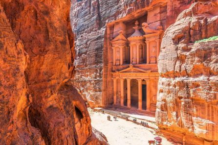 Потопете се в магията на Петра - древния „Изгубен град“, който се разкрива пред вас след пешеходна разходка по внушителен каньон със стръмни скални стени, известен като Сик. Там, сред скалите, ще откриете шедьоври на древната архитектура - гробници, храмове и цели фасади, изсечени директно в пясъчника от набатеите преди повече от 2000 години.