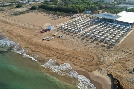 Плажът е оборудван с чадъри и шезлонги, които се ползват безплатно от гостите на хотела по 1 чадър и 2 шезлонга на стая до изчерпване на количеството, душове и тоалетни. Има бар срещу заплащане и ресторант, където може да си ползват обяда безплатно при предварителна резервация от предходния ден. Има игрища за различни игри - волейбол, футбол, тенис.