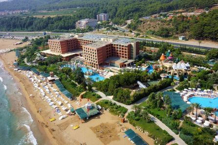 Pegasos Royal 5* се намира в Анталия, срещу залива Инджекум, на брега на морето и предлага чудесен плаж със Син флаг. Алания е само на 30 минути с кола от хотела. Летището на Анталия е на 90 км.