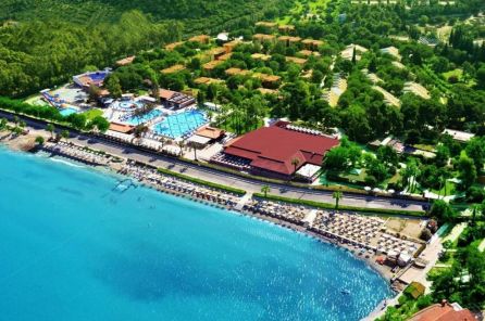 Kustur Club Holiday Village се намира на 130 км от летище "Милас", на 3 км от центъра на Кушадасъ, на огромна зелена територия, на брега на морето. Препоръчва се за семеен отдих.