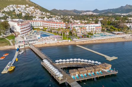 Хотелът е разположен на брега на морето, в района на Тургутрейс. Летище "Милас" отстои на 55 км, центърът на Бодрум се намира на 22 км. Последно е реновиран през 2020 г.