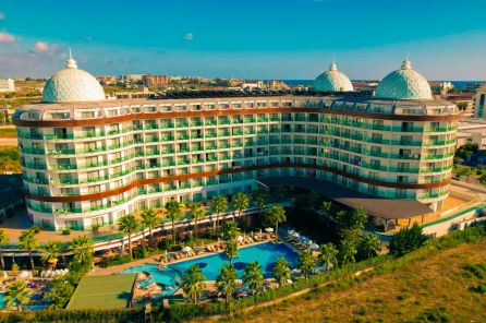 Собствен пляж с фин пясък и плавен преход, на плажа има бар и снек-бар. Намра се на около 1000 м от хотела, осигурен е безплатен шатъл. 6 открити басейна, в това число релакс-басейн (16+). Детски свят с басейн с пързалки и аквапарк с 10 пързалки - както за възрастни, така и за деца (пързалките в аквапарка са отворени между 15 април и 15 октомври. Извън тези дати, те могат да варират в зависимост от метеорологичните условия). На плажа и при басена чадъри, шезлонти, хавлии се ползват безплатно.