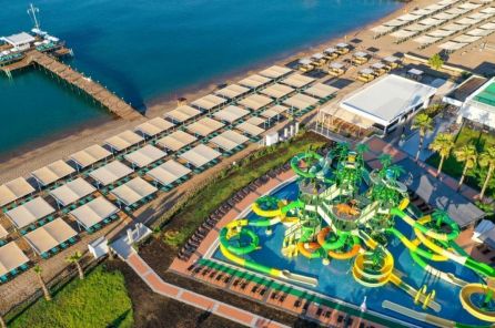 Намира се на 12 км. от летище Анталия, на 14 км. от центъра на Анталия, на 3 км. от центъра на Лара, на брега на морето.
